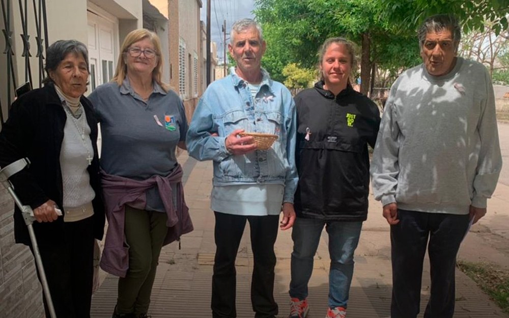 “Hoy salimos con los adultos mayores a repartir lazos y a conversar con los vecinos/as sobre la importancia de la prevención.”