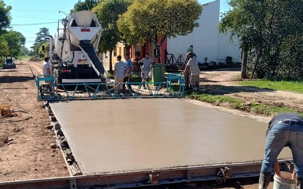La Municipalidad de Cruz Alta avanza con la pavimentación de hormigón en calle Alberti entre Garibaldi e Intendente Manuel Muñoz.