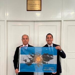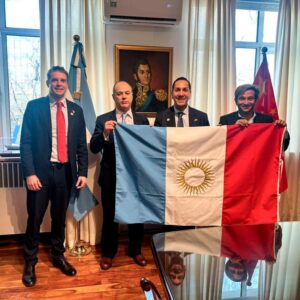 “Agradecemos al Embajador Argentino Marcelo Suárez Salvia por su cordial recibimiento e hicimos entrega de una bandera de la provincia de Córdoba, la cual es la primera de las 26 provincias argentinas que llegó a China.