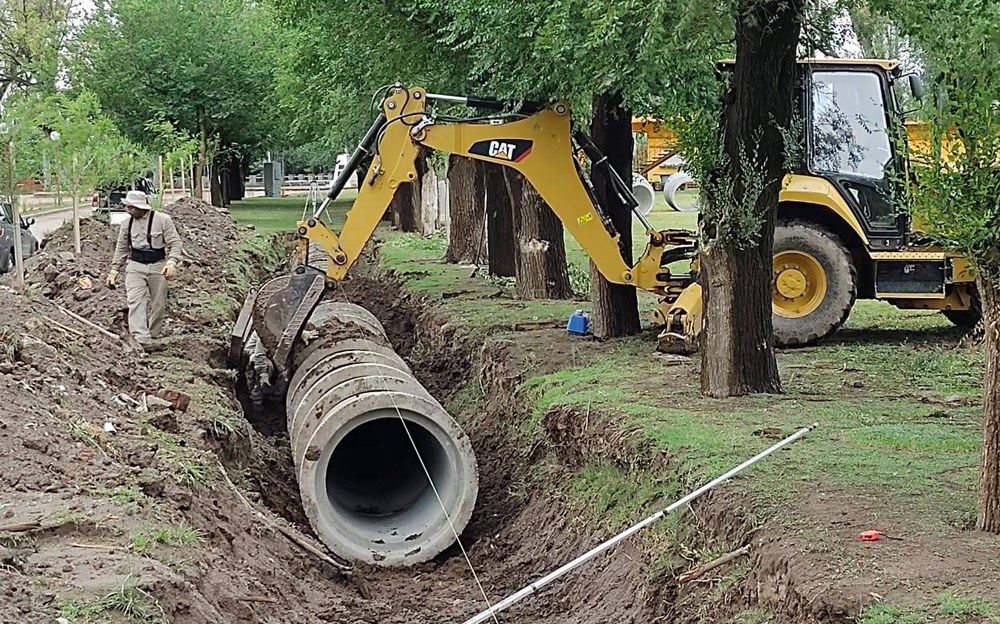 La Secretaría de Obras Públicas de Cruz Alta continúa con los trabajos de recomposición de desagües del lago artificial en el parque Mariano Moreno.