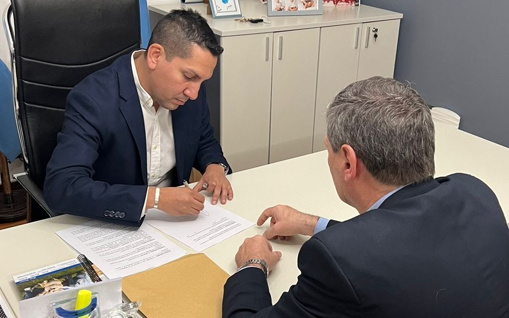 El intendente Agustín González firmó la adhesión al Programa Nacional de Descontaminación y Compactación de Vehículos judicializados.