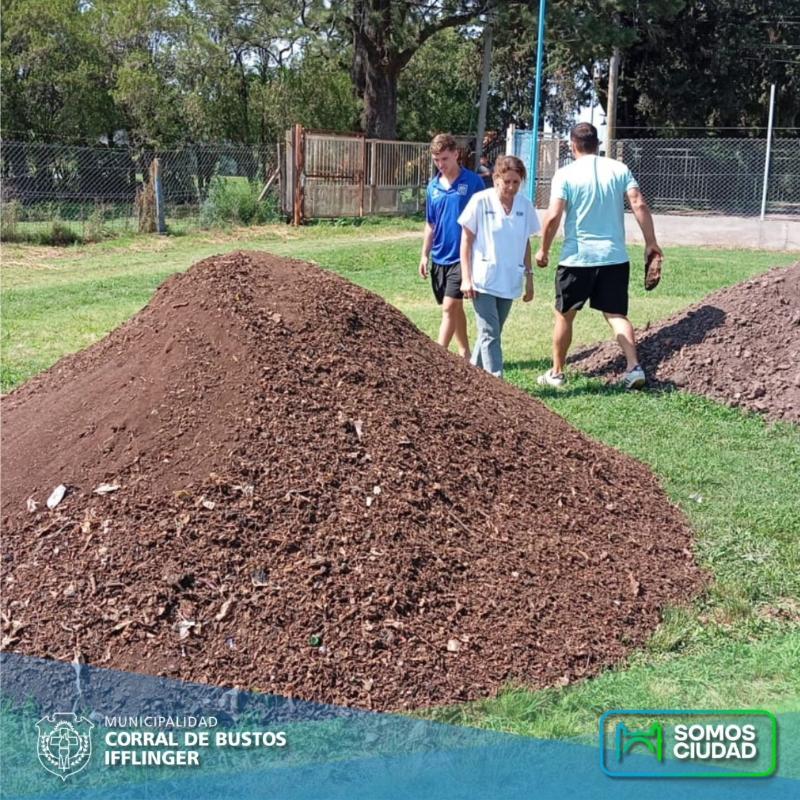 En este marco, hicimos entrega de compost orgánico productivo proveniente de la planta de tratamiento de residuos a las canchas de Sporting Club .