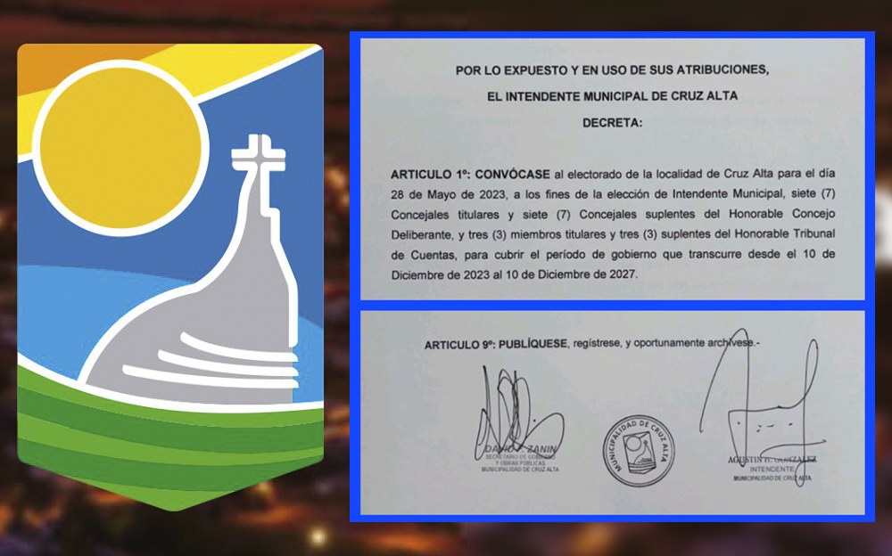 Hemos firmado el decreto del Departamento Ejecutivo que convoca a elecciones municipales en Cruz Alta para el día 28 de mayo del corriente año. #CruzAlta#Elecciones2023 pic.twitter.com/0uWzMoHSik