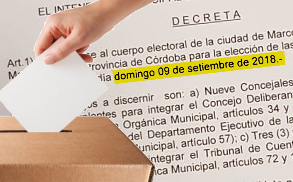 El pasado 7 de junio el Sr. Intendente Ing. Pedro Dellarossa firmó el Decreto N° 125 en el cual convoca al cuerpo electoral de la ciudad de Marcos Juárez para la elección de autoridades municipales, estableciendo como fecha el domingo 9 de septiembre de 2018.