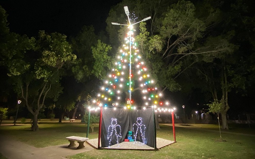 La Municipalidad de General Roca enciende el espíritu navideño con una instalación en Plaza Sarmiento.