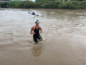 La primera fase del evento consistió en kayak, que tuvo lugar desde el balneario La Boca, en Saladillo, hasta el balneario de Trípoli donde continuó con la fase de natación hasta el club Almafuerte.