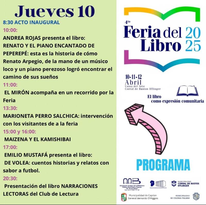 Feria del Libro en O´Higgins noticias 10 abril, 202510 abril, 2025Triple Media La Municipalidad de O´Higgins invita a la comunidad y la región a participar de esta gran fiesta literaria.