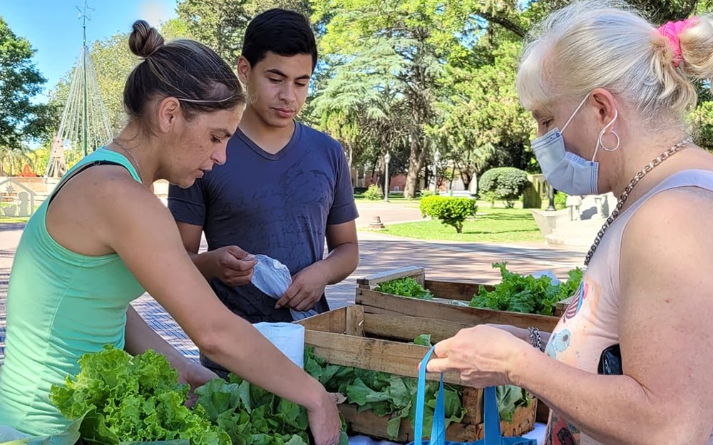 Los frutos de la Huerta Agroecológica Municipal se ofrecen en la plaza central a vecinos y vecinas de la localidad.
