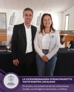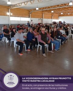 En la jornada de hoy, la comunidad de General Baldissera recibió a la Vicegobernadora de la Provincia, Myrian Prunotto, quien acompañó la entrega de 18 escrituras, 6 créditos del Banco de la Gente y aportes al Club Mitre, Sociedad Italiana, Bomberos Voluntarios, Centro de Jubilados e ISAC.