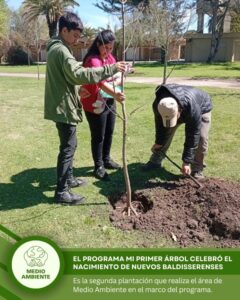 Se llevó adelante la segunda entrega del programa provincial Mi Primer Árbol, donde cada familia pudo elegir dónde plantar su ejemplar: algunas decidieron hacerlo en el Club Mitre y otras lo llevaron al frente de su hogar.