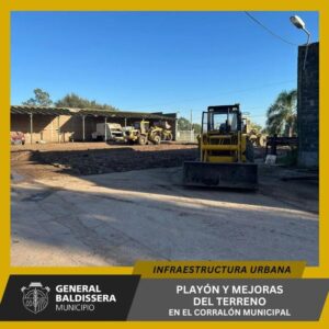 General Baldissera: Nuevo Espacio Municipal noticias 7 mayo, 2024Triple Media El área de servicios de la Municipalidad de Marcos Juárez construyó un playón en el Corralón Municipal. Además, se compactó el terreno para un mejor acceso y preservación de los vehículos y maquinarias.