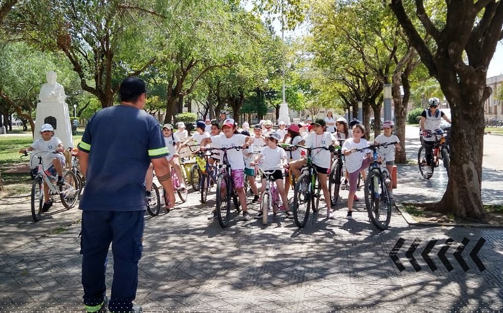 Desde la Dirección de Tránsito municipal se llevó a cabo una bicicleteada educativa para todo el alumnado de la Escuela Roque Sáenz Peña.