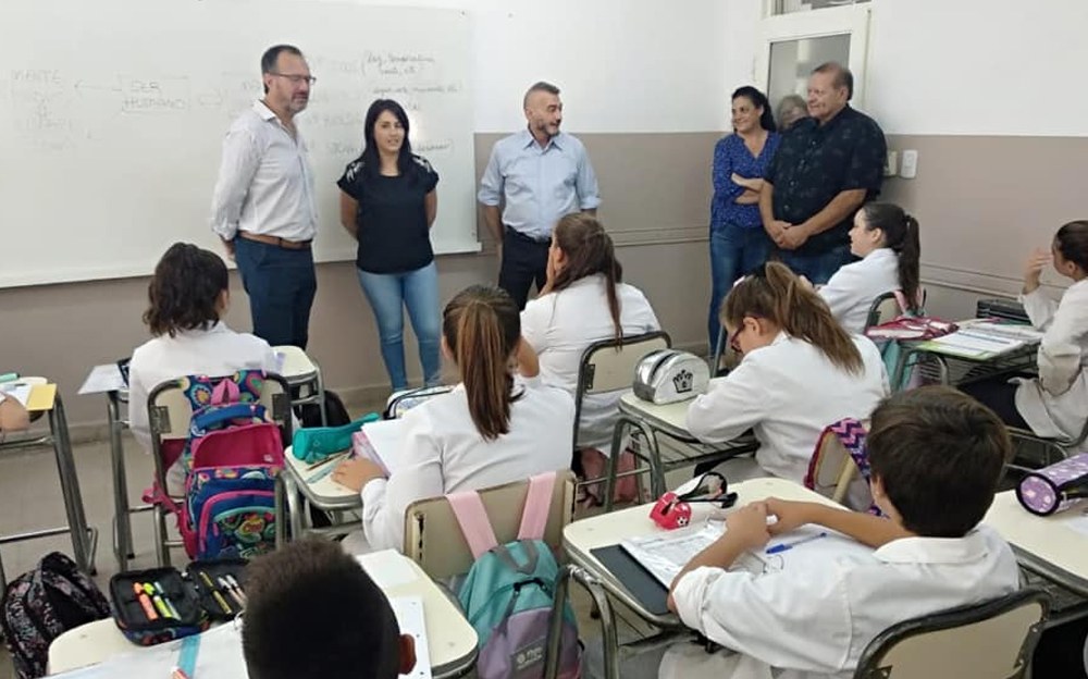 El equipo municipal recorrió las aulas que fueran pintadas completamente durante la vacaciones de verano. Esta obra se pudo realizar gracias a la ejecución de los fondos del FODEMEEP, y a la mano de obra que puso la Dirección de Servicios Municipal.