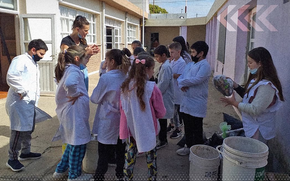 El personal de EcoRoca visitó la escuela Roque Sáenz Peña para brindar asesoramiento a los chicos de 5to grado en la producción de compost.