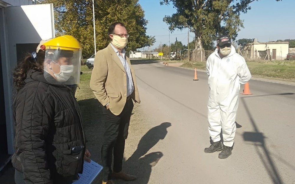 “Hoy estuve visitando el control sanitario de calle Laprida, en el ingreso de nuestra localidad. Allí pude cerciorar el desarrollo de las tareas de control y de higienización que se están realizando en dicho acceso.”