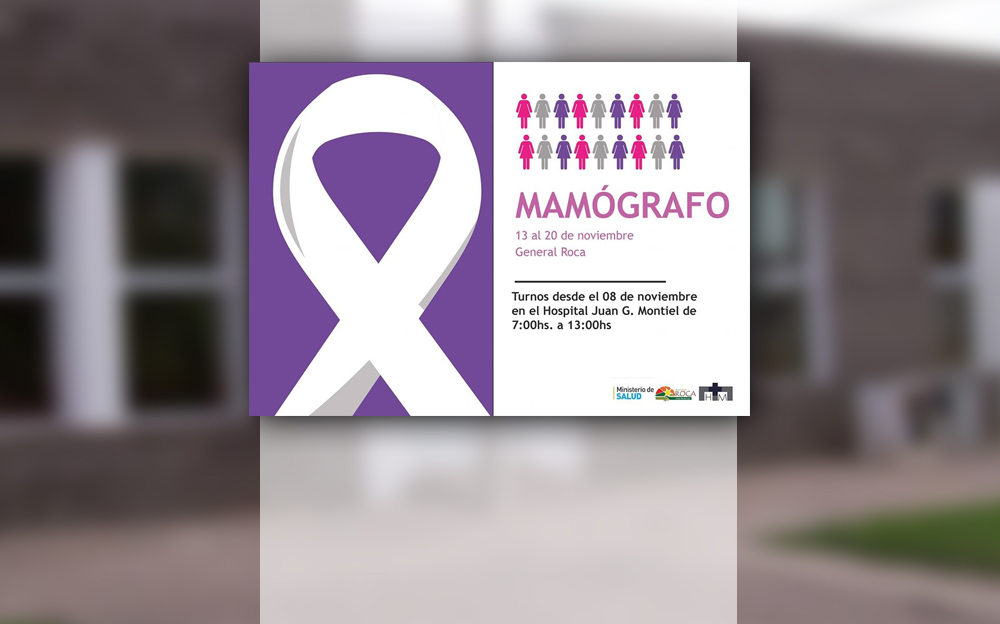 El Hospital Juan G. Montiel de la localidad de General Roca comunica a las vecinas de la ciudad la instalación del Mamógrafo desde el 13 al 20 de noviembre.