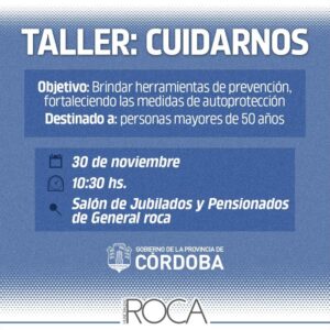 La Municipalidad de General Roca invita a todos los vecinos a participar de los talleres de seguridad ciudadana y prevención del delito dictados por la Secretaría de Seguridad y Prevención de la Provincia de Córdoba.