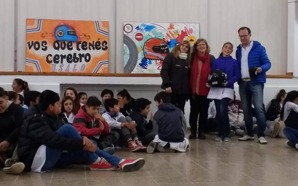 La Comunidad Educativa del Instituto José Hernández de General Roca, especialmente a los alumnos de 3° año y la Profesora Natalia Tanchi se sumaron a la campaña de concientización que viene llevando adelante la Municipalidad , sobre el uso obligatorio del casco.