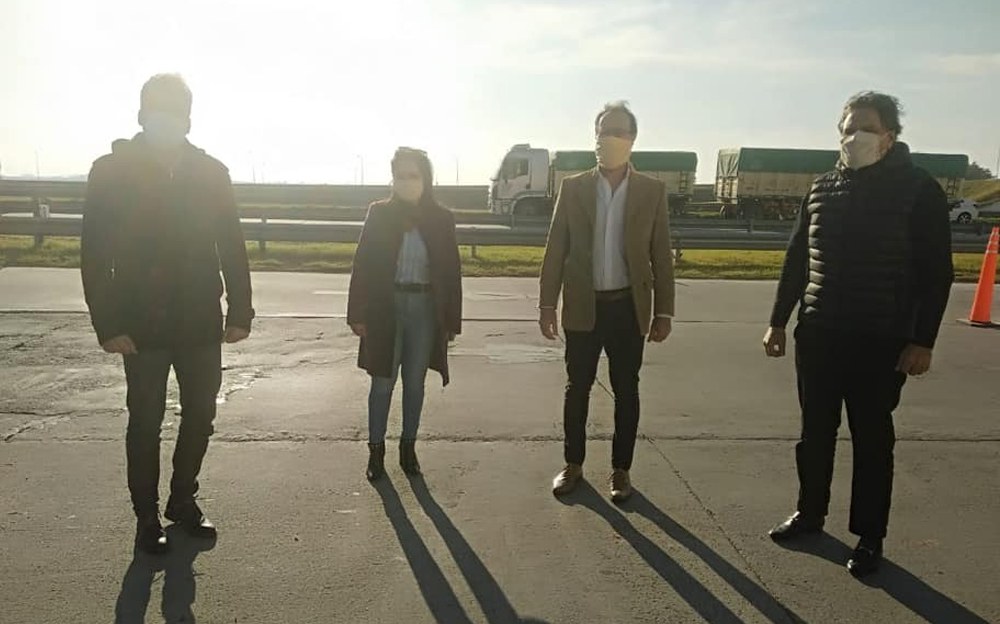 Durante la reunión realizada en el acceso a la localidad, tomando todas las medidas de bioseguridad correspondientes, el titular del Ministerio de Seguridad reconoció a los efectivos que se encuentran trabajando denodadamente en los operativos sanitarios y los alentó a continuar firmes con esa tarea.