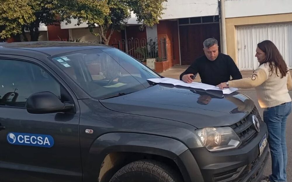La intendenta Valeria Soledad Chicco junto a Adrián Gruppi, representante de la empresa encargada de realizar la obra, recorrieron las distintas manzanas de cobertura.