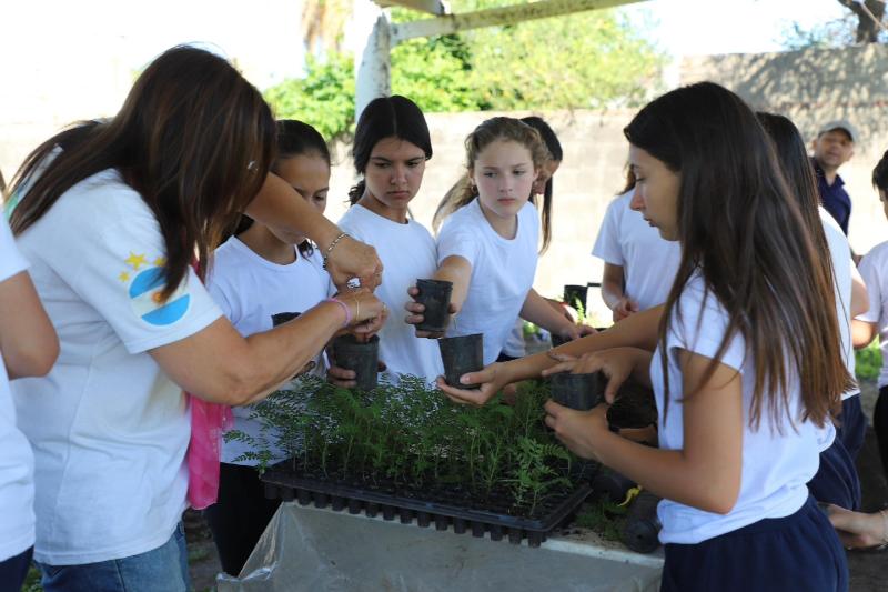 Los estudiantes de primer año del Colegio IPDSL están llevando a cabo un proyecto integrador en la huerta saludable “Don Atilio” del Hogar Municipal.