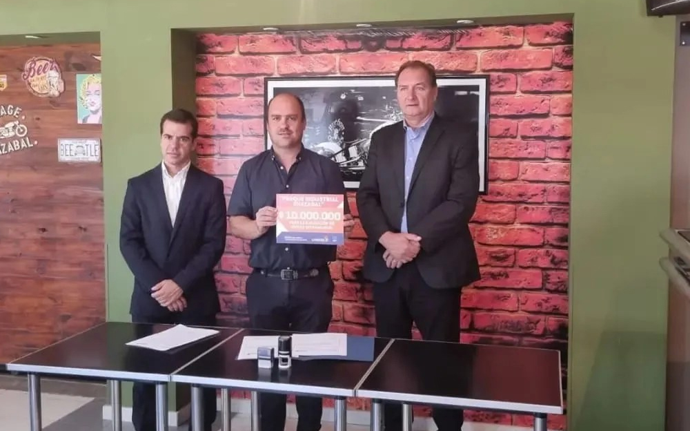 El intendente Municipal Ing. Juan Pablo Vassia recibió la visita del Ministro de la Producción de Córdoba Ing. Pedro Dellarrossa quien hizo entrega de un aporte no reintegrable de 10 millones de pesos para comenzar con la obra de marcación de calles en el predio del Parque Industrial Idiazábal.