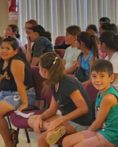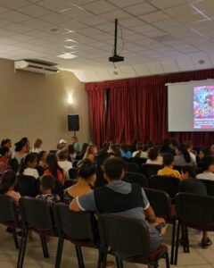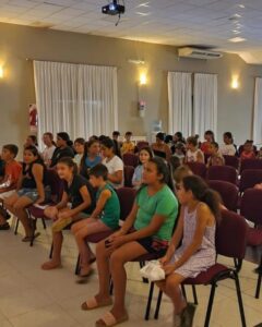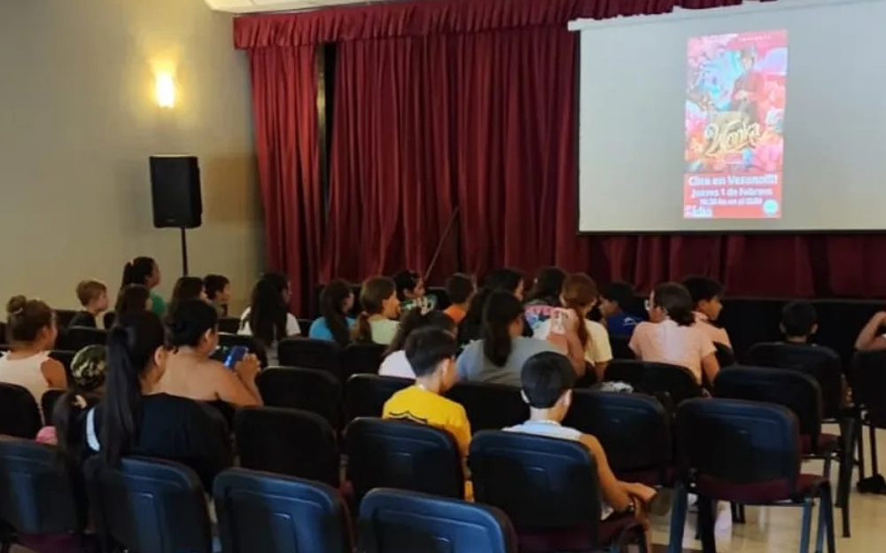 Los chicos y chicas de la comunidad disfrutaron el primer día de cine en las instalaciones del SUM municipal.