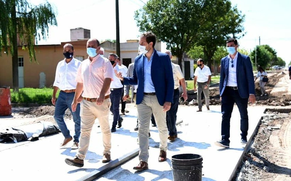 El Secretario de Obras Públicas de la Nación, Martin Rodrigo Gill junta al intendente Juan Pablo Vassia, recorrieron la obra de pavimentación de 5 cuadras en calle Belgrano que está en marcha con el Programa Argentina Hace.