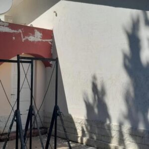 En la Escuela Presidente Sarmiento de Cayuqueo se trabaja en la reparación de revoques exteriores y posterior pintura.