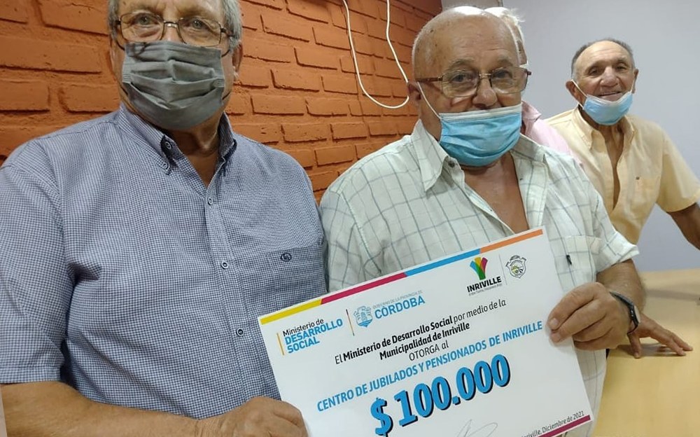 La Municipalidad de Inriville hizo entrega de $100.000 del Ministerio de Desarrollo Social Córdoba para compras de insumos que mejoren los servicios del Centro de Jubilados y Pensionados.