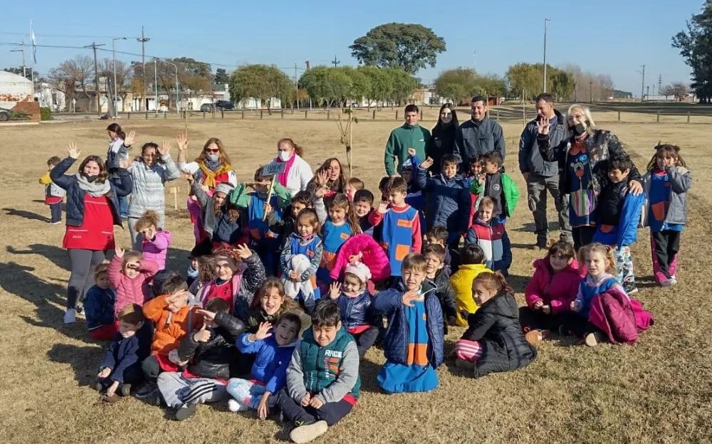 La municipalidad de Inriville organizó una jornada junto a niños/as de Jardines Justo José de Urquiza y Mariano Moreno, con el objetivo de plantar árboles en el predio del ferrocarril.