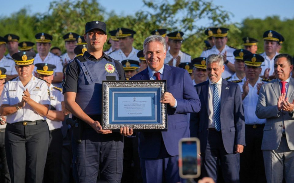 Por último, remarcó a la nueva camada de oficiales que pueden contar con el apoyo del Ejecutivo provincial porque las inversiones que estamos haciendo, en armas, en chalecos, en infraestructura, las vamos a seguir haciendo. “Porque sin infraestructura y sin protección ustedes no pueden cumplir el deber de cuidarnos de los delincuentes”.