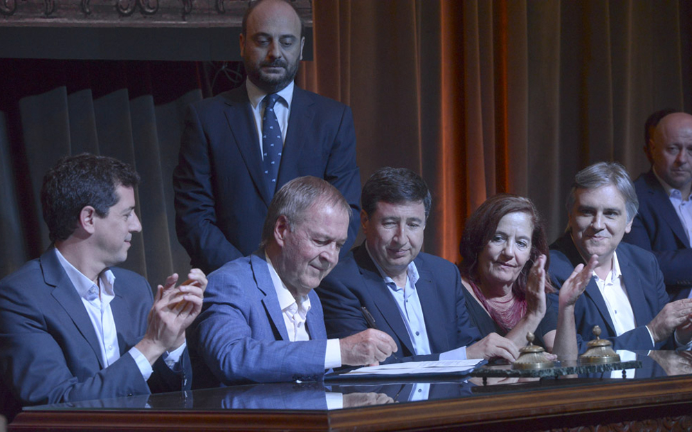 El gobernador Juan Schiaretti y el ministro de Desarrollo Social de la Nación, Daniel Arroyo, suscribieron este jueves en el Centro Cívico provincial el acuerdo que formaliza la adhesión de Córdoba al Plan Nacional Argentina contra el Hambre.