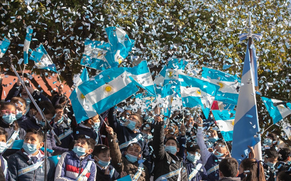 Alumnos y alumnas de escuelas de la ciudad realizaron la promesa a la insignia nacional, y fuerzas de seguridad juraron fidelidad al emblema patrio.