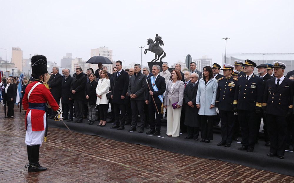 El mandatario provincial brindó un saludo protocolar, se izaron banderas y se entonó el Himno Nacional Argentino.