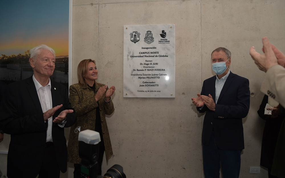 El gobernador de Córdoba, Juan Schiaretti, participó hoy en la inauguración del edificio principal del Campus Norte de la Universidad Nacional de Córdoba (UNC) y anunció que la Provincia construirá una pasarela peatonal sobre la autovía Variante Juárez Celman, a la altura del citado campus universitario, en la ciudad de Juárez Celman.