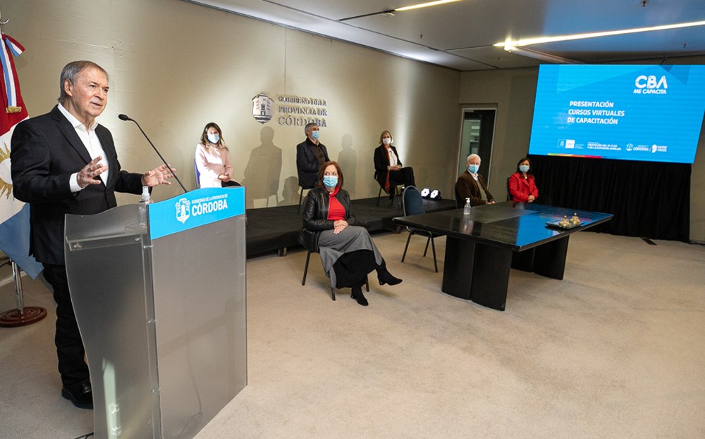 El gobernador, Juan Schiaretti, junto al rector de la Universidad Nacional de Córdoba, Hugo Juri, presentó este jueves a través del programa Cba Me capacita, una propuesta de formación que ofrece más de 50 cursos virtuales, que permitirán a los cordobeses prepararse no sólo para el mundo del trabajo, sino también en problemáticas sociales actuales.