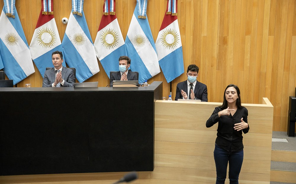 La norma que establece la obligatoriedad de contar con un grupo de intérpretes que desarrollen esta tarea durante las sesiones fue aprobada por unanimidad el 29 de septiembre de 2021, a poco de conmemorarse el Día Internacional de las Lenguas de Señas.