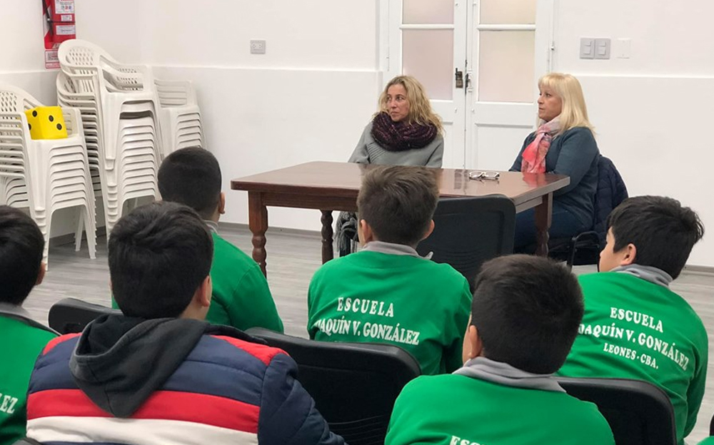 Alumnos de 6to. grado de la Escuela Joaquín V. González visitaron el edificio municipal de Leones y fueron recibidos por la Intendenta Lorena Bussi y la Coordinadora de Protección Ambiental Elsa Beatriz Di Cristófaro.