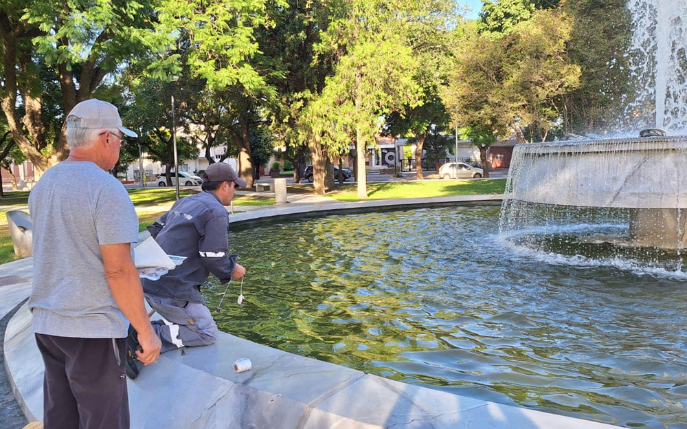 Continuando con el intenso plan de control de vectores y mosquitos para prevenir los contagios por Dengue, la Municipalidad de Leones comenzó a aplicar larvicidas sobre espejos de agua en los espacios públicos de la ciudad.