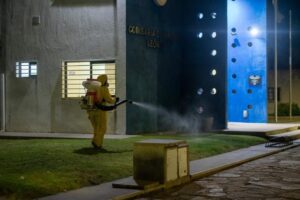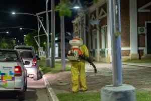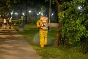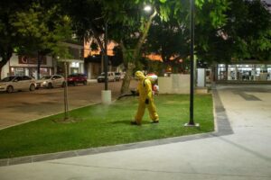 Calles, barrios y espacios comunes son pulverizados por los equipos municipales con el fin de atenuar la proliferación de mosquitos.