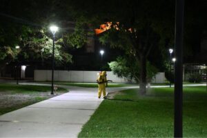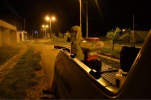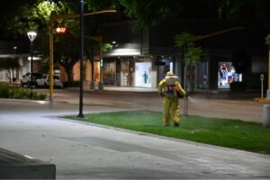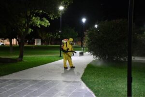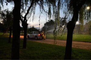 Sumando a las medidas preventivas, durante la madrugada y mañana de hoy, el municipio estuvo realizando una nueva fumigación contra mosquitos en la ciudad.