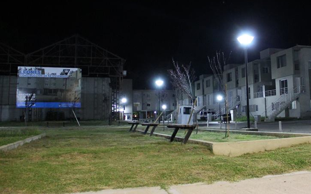En Desarrollo Urbanístico Leones, sobre calle Pasaje Posta Los Leones, la gestión municipal de Lorena Bussi incorporó nuevas farolas con luminarias led que cambiaron totalmente el lugar y principalmente para brindar mayor seguridad a todo el barrio.