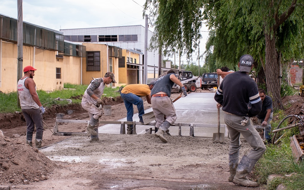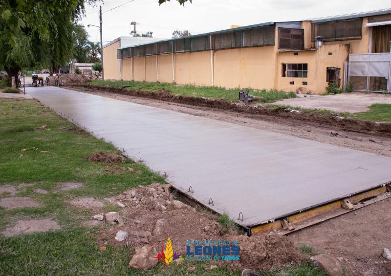 La Municipalidad de Leones se encuentra repavimentando con hormigón la calle San Luis. En su último tramo iniciando desde Bv. Colón hacia el norte.