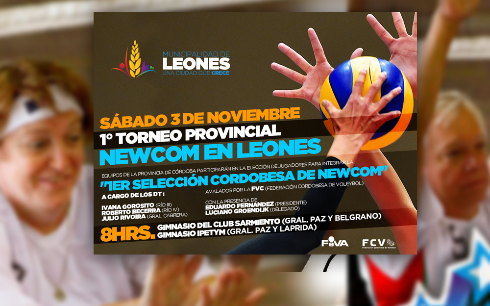 El próximo sábado 3 de noviembre, se llevará a cabo el primer Torneo Provincial de Newcom en la ciudad de Leones. Del mismo participarán equipos de Newcom de toda la provincia de Córdoba y es avalado por la Federación Cordobesa de Voleybol.