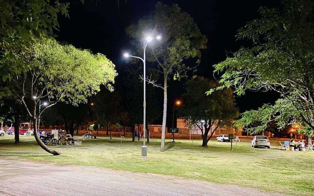 La Municipalidad de Leones renovó toda la iluminación del Parque del Viajero.