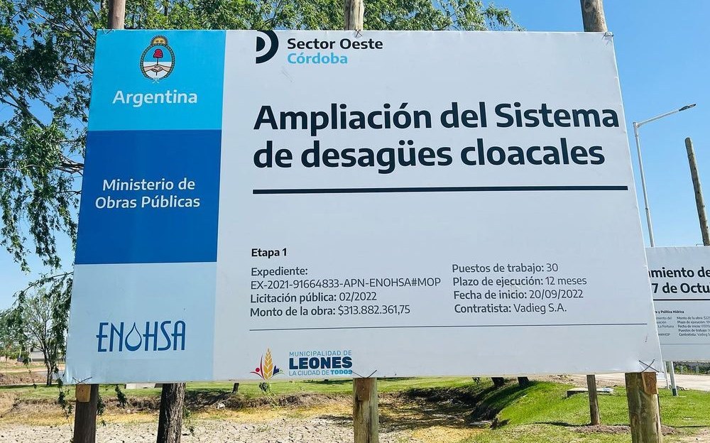 El viernes último la Municipalidad de Leones recibió el adelanto financiero para comenzar con la Ampliación del Sistema de Desagües Cloacales de Barrio Ensanche Oeste gracias al acompañamiento del Gobierno Nacional a través del ENOHSA.