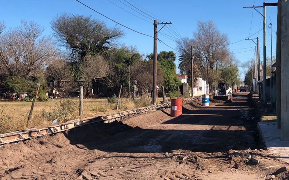 La municipalidad de Leones está realizando cordón cuneta en calle Ballesteros entre Patagonia y San Juan.