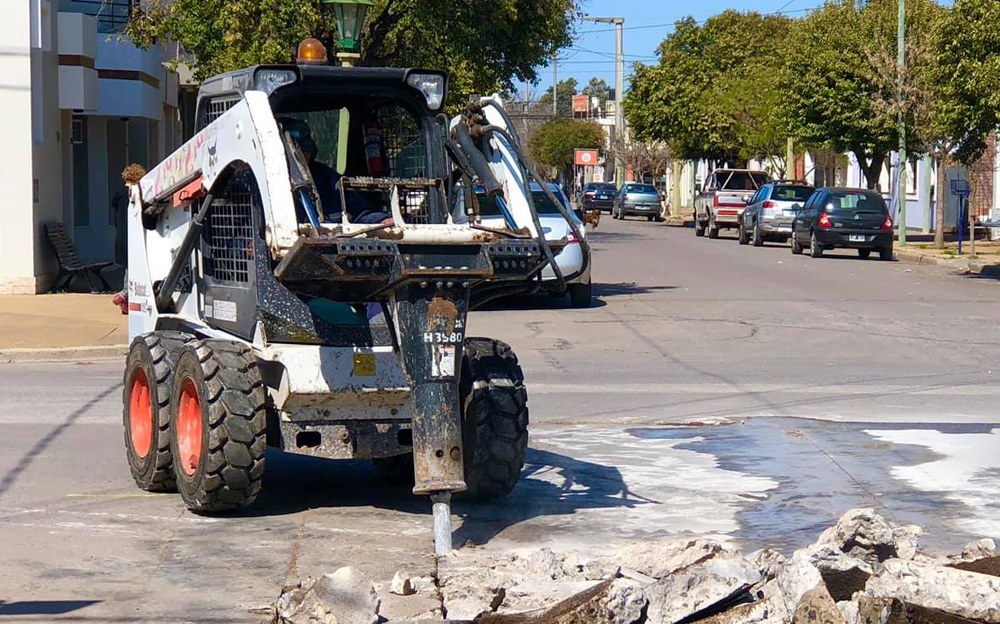 Levantamiento de todo el hormigón de la esquina de Rivadavia y Gral Roca..Se realizará la esquina nueva por completo.