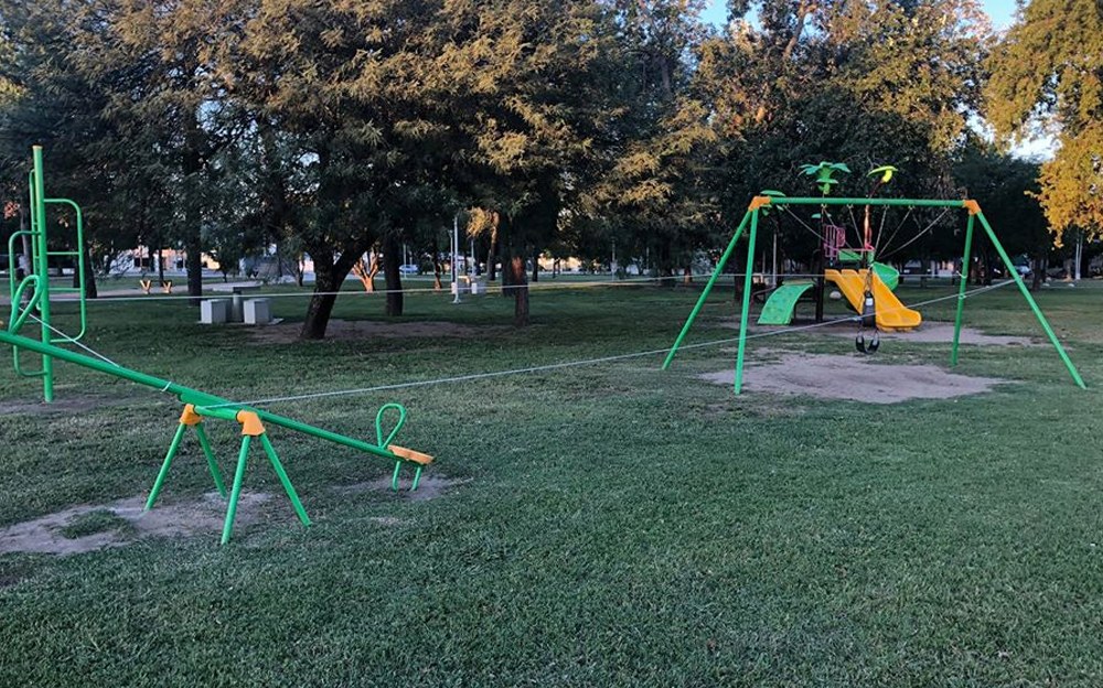 Respetando la cuarentena nacional, todos los juegos de los espacios públicos han sido cercados.